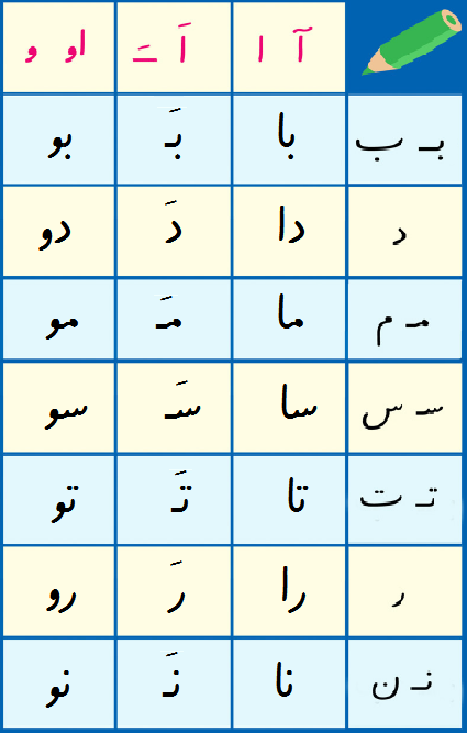تکمیل و تمرین جدول تو خونه یادت نره پسر خوب!