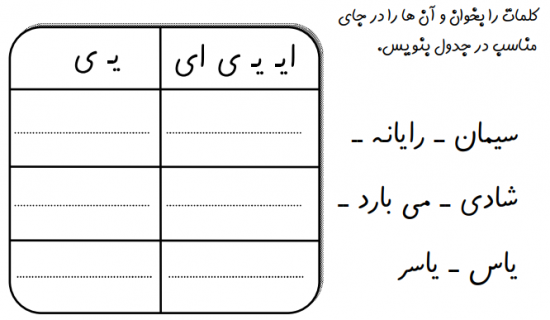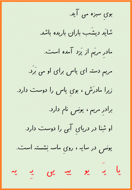 روانخوانی و تمرین نشانه ی « یـ ی »