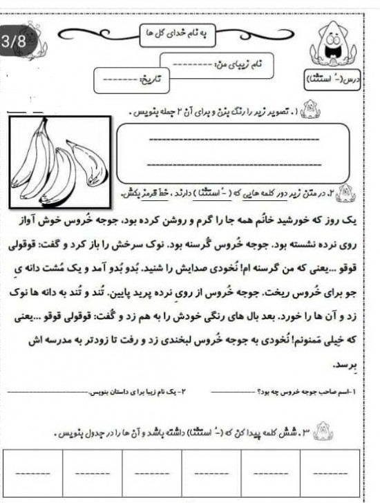 فارسی (نامه به پرستار یا پزشک )سه پایه ی اول