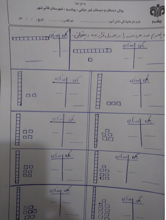ریاضی مفهوم دسته بندی و قرار دادن در جدول و خواندن عدد