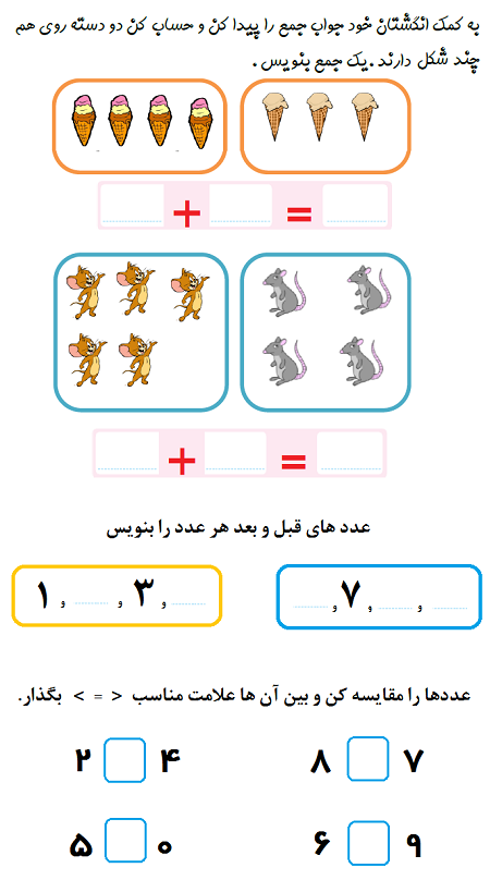 گلم، درکتاب ریاضی باجمع های نظام دار برای عددهای 1 تا 10 آشنا شده ای.