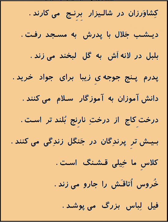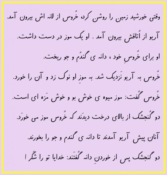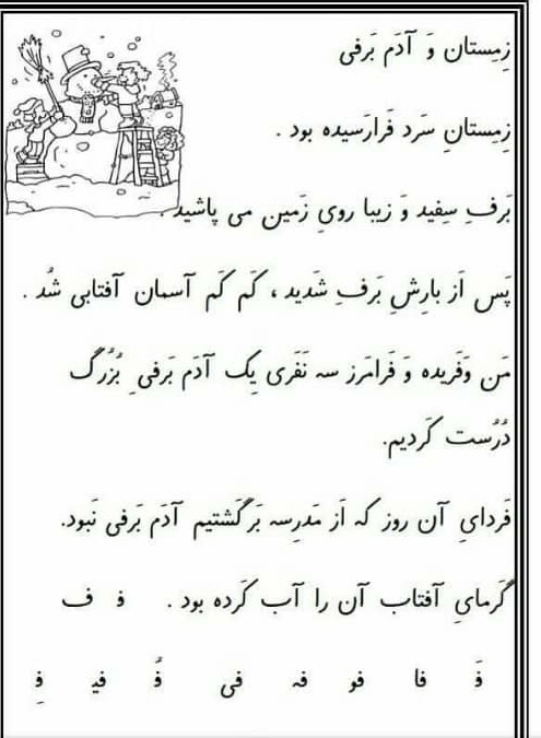 2. پسر پر تلاشم ،کتاب خوانداری خودت را باز کن یه قصه ی زیبا برای تصویر درس نارنج و برنج بساز حتی میتونی یک نقاشی هم برایش بکشی.
