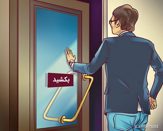 روی در نوشته در را بکشید اما آقا در را هل میدهد