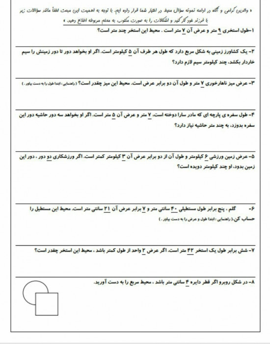 ریاضی محیط ومساحت