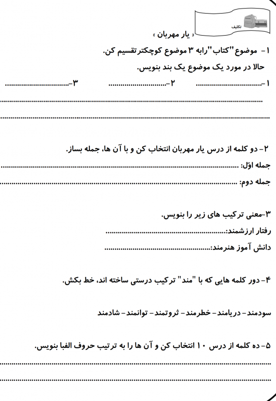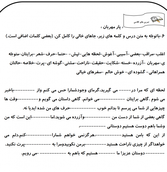 فارسی مرور درس یار مهربان