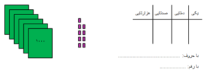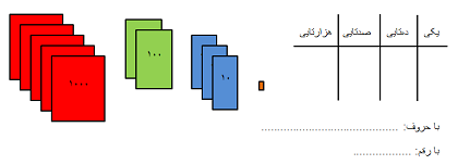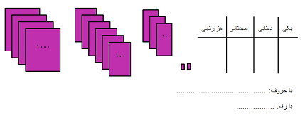 1- پسرای عزیزم! جدول ارزش مکانی را کامل کنید. و عددهای بدست آمده را با رقم و حروف بنویسید.