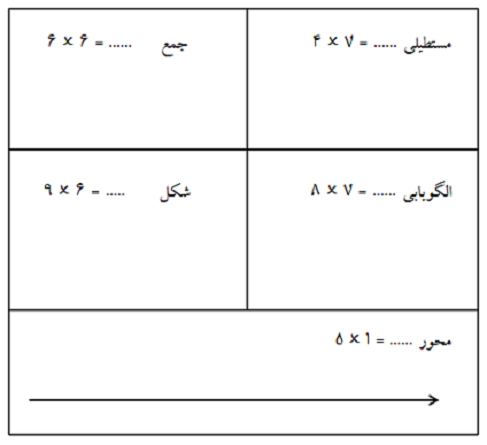 1- عزیزم! برای شکل زیر ضرب بنویس.(همراه با خاصیت جابجایی)