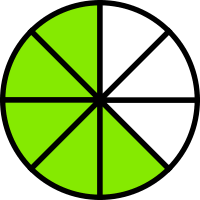 ب) 2 قسمت از 5 قسمت مساوی رنگ شده