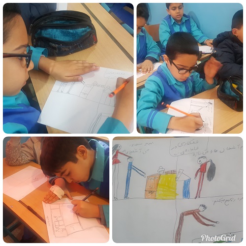 نقاشی همکاری در خانوتده همراه با بند نویسی تلفیق فارسی و اجتماعی سوم ابوعلی سینا
