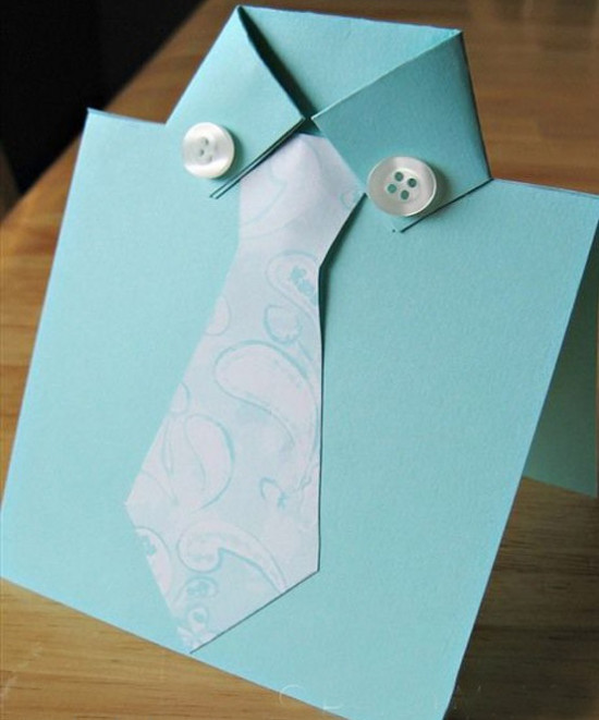 با تزیینات دلخواه خود روی کارت را تزیین کنید. می توانید با کاغذ، پاپیون یا کراوات درست کنید و روی کارت بچسبانید.