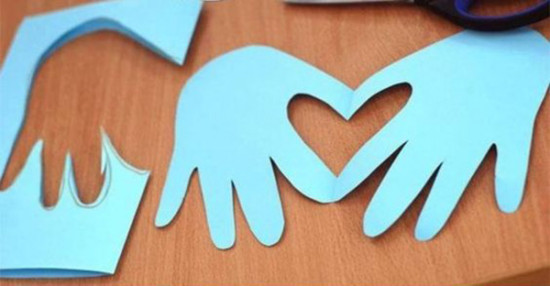 ۲- با قیچی دو دست روی الگو را کامل برش دهید. قلب دست ساز شما آماده است و می توانید روی قسمت داخلی ان یک متن زیبا برای پدر خود بنویسید.