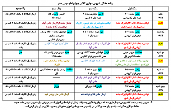 با توجه به فیلم هایی که در شبکه ِ آموزش پخش می شود در س ها را ادامه خواهیم داد لطفا روزانه به سایت سر بزنید تا از تکالیف هر روز مطلع باشید.