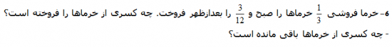 نمونه سوال ریاضی فصل دوم (تساوی کسر ها)