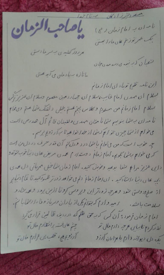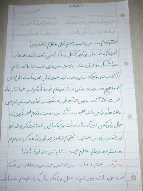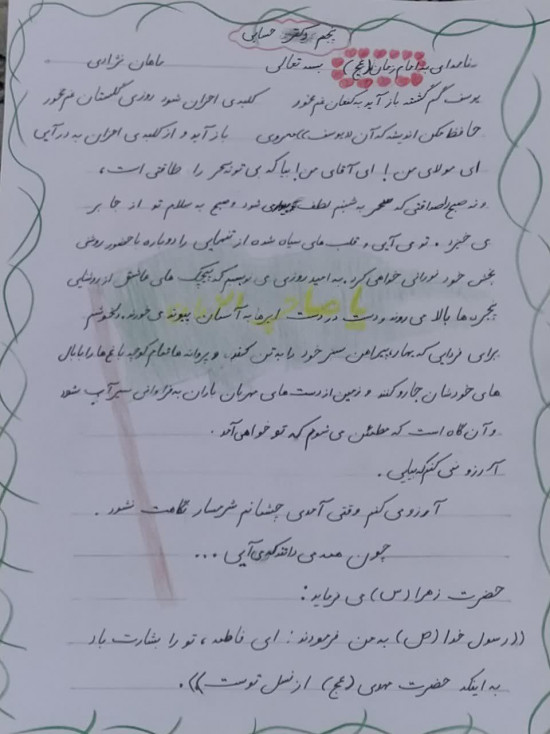 اسامی نفرات برتر مسابقه نامه ای به امام زمان عجل الله